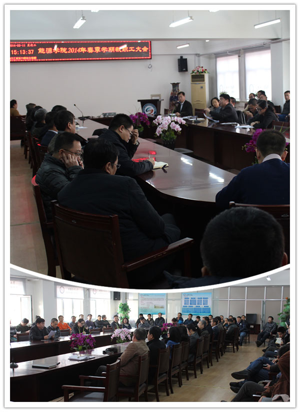 2014年3月11日下午15:00,新葡萄8883官网AMG官网在动力楼619会议室召开全院教职工大会,布置新学期工作。院长赵广播,院党委书记张桂芬,副院长李炳熙、王洪杰、陈浮、党委副书记苑颖及新葡萄8883官网AMG官网全体教工参加了本次会议。