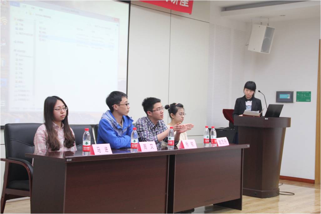 四位嘉宾首先以ppt展示的形式,结合个人考研心得,从不同角度系统地分享了考研经验,例如复习时间安排,进度规划,资料选择,心态调整等。他们用自己的亲身经历告诉现场的学弟学妹:只要有方法,有决心,并持之以恒,就一定会考取优异成绩。在自由提问环节,同学们积极踊跃地就考研的各个环节向嘉宾请教,嘉宾们耐心地一一解答,并不断地给予大家鼓励。