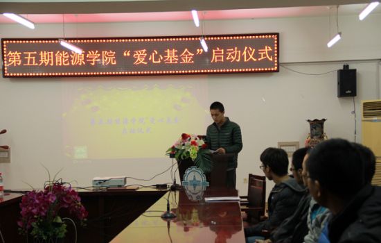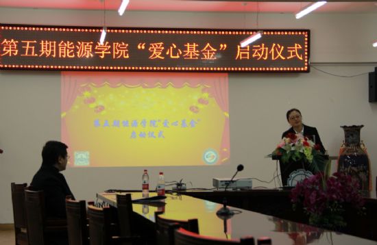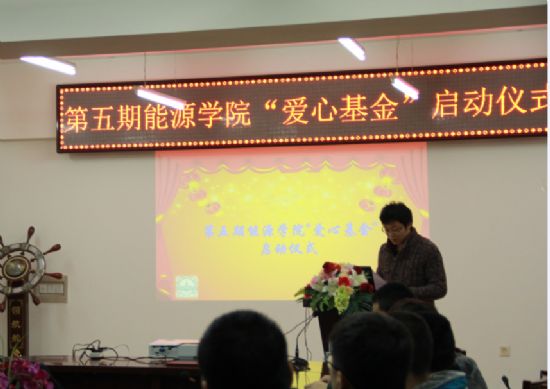 伴随着热烈的掌声,启动仪式正式拉开了帷幕。首先由刘超老师介绍了 能源“爱心基金”的资助方式和管理模式。该基金由新葡萄8883官网AMG官网学工办和先进动力研究所共同管理,旨在进一步深化精神文明内涵建设,培养学生“感恩、回报、爱心、责任”的价值理念,同时,也体现了学院对学生的关爱和对学生成长成才的殷切期望。在苑颖老师公布了15级本科生受资助的学生名单后,能源“爱心基金”的发起人秦江老师介绍了成立爱心基金的目的,表示他希望这些助学金能够更好地激励受助学生的学习,也希望能够增强自身和受助学生的交流,更好地了解到他们的学习生活,起到真正的帮扶的作用。