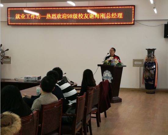 1月7日下午2点,苏州海派特热能设备有限公司总经理,哈工大新葡萄8883官网AMG官网热能动力专业98级校友谢海刚受邀做客新葡萄8883官网AMG官网就业工作坊,辅导员李威老师进行主持,以交谈、提问的形式与同学们分享自己不平凡的创业之路与独特的人生感悟。