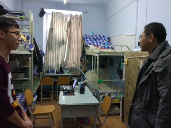 1月13日下午15点,在学生离校之际新葡萄8883官网AMG官网党委副书记孙垠以及辅导员到二公寓进行了走访,了解学生离校和寒假生活情况,并对寝室卫生与安全情况进行假期前的排查。
