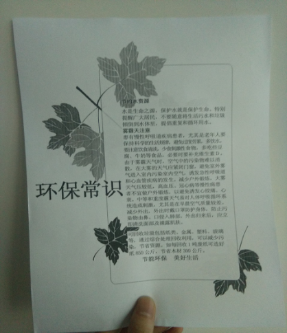 这次活动采用两种方式进行调查采样,分别在互联网和现实生活中分发调查问卷对洼兴镇的居民进行较为全面的调查。这次社会实践以宣传单的形式,对不同人群,深入社区、街道、商业区等场所进行环境保护知识的普及。结合实地走访和调查问卷的结果,收集并分析关于巴彦县洼兴镇人民对环境保护知识的了解程度的数据,测算当地环境保护知识普及度,从而为当地有关部门提供有参考价值的数据分析,为推动社会可持续发展提供帮助。结合对环境保护知识的了解程度的数据,发现家乡的环境保护知识普及度较低,需要更多的普及,政府部门应该在普及民众环保意识上加大力度。谈到这次社会实践的收获,可以用一句话来总结,“纸上得来终觉浅,绝知此事要躬行”。比如发宣传单的时候,站在寒冷的大街上,把宣传单发给来来往往的行人,却只有很少的人接受。