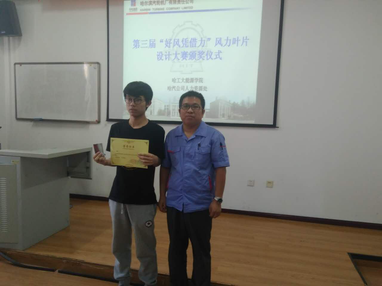 上午同学们首先参观了哈尔滨汽轮机厂有限责任公司展厅,在讲解员的带领下,同学们在时光隧道中感受了哈汽的发展历程,了解哈汽厂在祖国建设的各个时期为国家做出的贡献,亲眼见到了哈汽厂高精尖产品。然后同学们去参观了叶片制造分厂,在那里看到了大型的汽轮机叶片的生产制造过程。参观结束之后同学们参加了“汽轮机叶片设计的基本概念和过程”的讲座,讲授人是在哈汽工作的哈工大毕业生,汽轮机厂研究所气动室主任刘云峰师兄,讲座之后同学们积极向师兄提问,了解到了汽轮机叶片设计加工装配等过程的方法和现阶段汽轮机叶片设计过程中亟待解决的问题,讲座最后由新葡萄8883官网AMG官网团委书记刘超、汽轮机厂人力资源处综合管理室主任王喜丽以及刘师兄为本次“好风凭借力”风力叶片设计大赛获奖的同学颁发了证书及奖品,本次参访活动圆满结束。