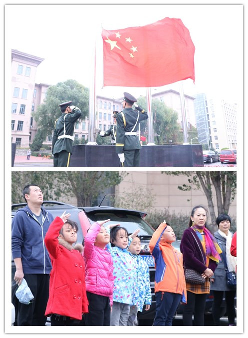 国庆佳节,红旗飘扬。六点半,队员们就已早早在公寓楼下集合,互相整理好衣物,因为今天是祖国得生日,即将召开得十九大又为这次升旗增添了新的意义。参加升旗得观众不仅有我校学生,亦有很多周围居民驱车前来观看升旗。升旗活动开始后,观众与护卫队一样肃静正立。随着一声响亮得国歌,旗手将国旗高高扬向空中,护卫队全体敬礼,观众行注目礼。伴着国歌得音乐,观众们自发唱起了国歌。