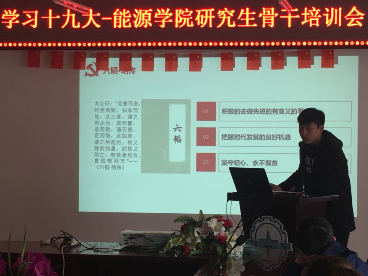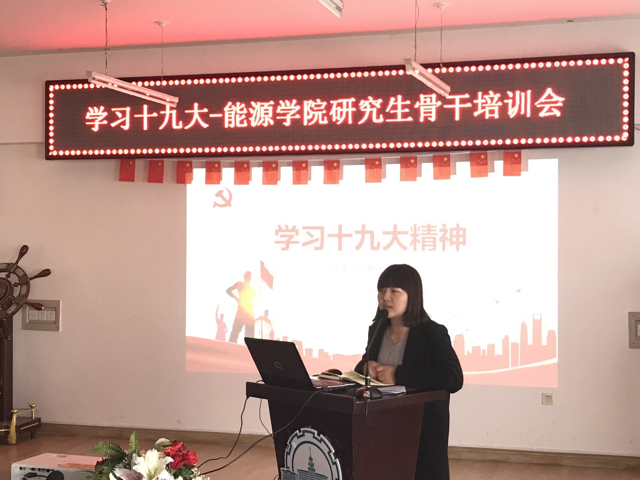 在中共十九大召开后,新葡萄8883官网AMG官网为带领学生干部学习十九大精神,形成党支部和班级共同建设、双向带动的良好格局,切实发挥研究生在学习和校园文化生活中的骨干带头作用,院团委召开了“学习十九大——研究生骨干培训”会议。本次会议由新葡萄8883官网AMG官网研究生会主席张舜禹主持,院研究生会干部、各班班委和各党支部书记参加,研究生辅导员老师蔡文雪出席本次会议并发表讲话。