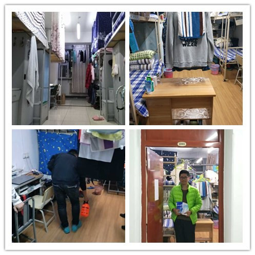 11月9日晚9:30,新葡萄8883官网AMG官网辅导员李威老师协同公寓干事王欣伟及各班生活班长,对2015级新葡萄8883官网AMG官网所有寝室开展卫生情况检查及文化建设评比活动。由于天气转冷,通风条件不理想,为防止细菌滋生、预防流行病的传播,辅导员李威老师与生活班长一起对寝室进行了细致的消毒工作。