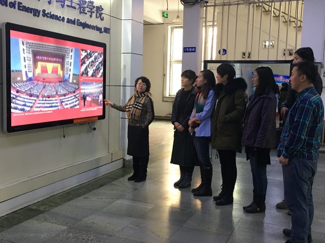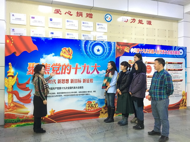 深入学习贯彻党的十九大精神,激励和引导支部全体党员紧密团结在以习近平同志为核心的党中央周围,把思想统一到党的十九大精神上来,新葡萄8883官网AMG官网机关党支部于12月8日上午组织党员到节能楼一楼大厅集中学习十九大宣传挂图。