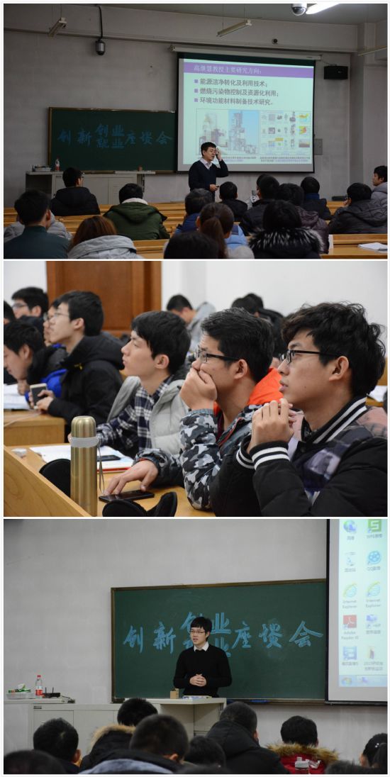 高继慧教授关注大学生创新创业已有十余年,他首先从全国大学生节能减排大赛切入,讲述了自己指导学生参加该比赛的历程,从最初的小试牛刀到第七届的丰硕成果,再到今天的成熟化,他体会到国家对于创新创业越来越重视,学生们也对创新投入更多的时间和精力。高继慧特别指出,有很多成果是很有产业化价值的,但大多数学生由于学业和精力等原因,并未进一步创业,这是非常可惜的。回顾自己的创新经历,高继慧认为,有一个创新的梦想是非常重要的,梦想越大,才会走的越远,希望各位同学能积极培养创新意识,在明天做出更好的成绩。本次座谈会在大家的掌声中落下帷幕。