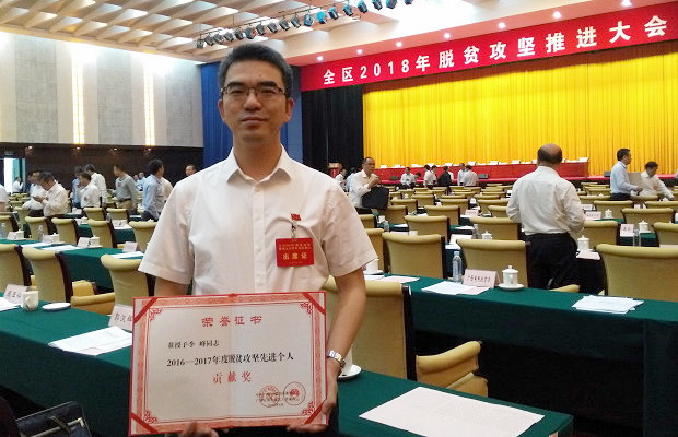 哈工大报讯(工会/文)4月27日,在广西南宁市召开的广西壮族自治区2018年脱贫攻坚推进大会上,我校扶贫挂职干部李峰获得2016-2017年度广西壮族自治区脱贫攻坚先进个人荣誉称号,并作为获奖代表领奖。
