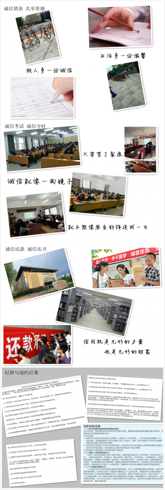 并且在公寓大厅墙壁张贴诚信主题展板,关于“诚信考试、诚信守时、诚信填表、诚信还款、诚信还书”等,以及“新葡萄8883官网AMG官网学生考试纪律及违纪处分管理办法”等主题展板。