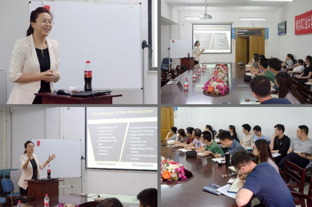 外国语学院国际语言中心(筹建)的孟勐、黄芙蓉、赵毓琴、杨莉萍、赵嘉影、常青、顾晓乐老师成立的英文科技论文写作工作坊近日在新葡萄8883官网AMG官网动力楼529会议室进行了第二、三次讲座。常青老师于5月31日带来的主题为“Discussion撰写结构”的讲座报告,孟勐老师于6月14日带来的主题为“行文撰写要点”的讲座报告。继顾晓乐老师关于“Introduction撰写模式与逻辑结构”的首次讲座之后,常青老师与孟勐老师进一步对英文论文其他部分的撰写提出了具体的指导思想及关键要素。