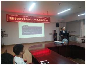 会议第三项,由学工办主任李峰老师对2018年的学生工作进行总结;李峰老师对2019年的工作进行了展望并对研分会的部门设置进行了简要的介绍,使得各位同学对自己的工作有了更加清晰地认识;相信在2019年,研分会的工作能更加带动每位研究生同学的积极性,做的更加好。