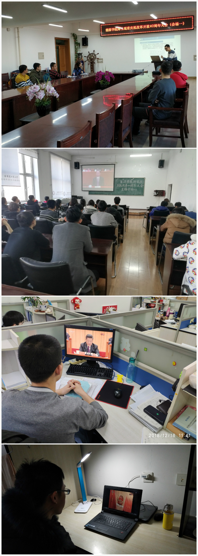 上午10时,庆祝改革开放40周年大会在人民大会堂举行,新葡萄8883官网AMG官网学子在动力楼、节能楼、会议室、实验室、寝室各地进行了大会直播观看。首先一同致敬了为改革开放事业做出杰出贡献的各界人士,为他们颁发荣誉奖章时同学们自发响起了热烈的掌声,由衷地敬仰感谢这些改革的推动者、国之栋梁和人民英雄为今天美好生活做出的努力和牺牲。而后一同聆听总书记在大会上发表的重要讲话。总书记说“40年来取得的成就不是天上掉下来的,更不是别人恩赐施舍的,而是全党全国各族人民用勤劳、智慧、勇气干出来的!”,句句振奋人心,催人奋进。