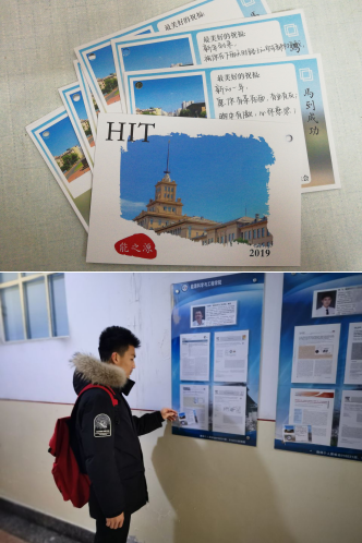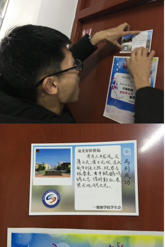 在新葡萄8883官网AMG官网团委与学生会的组织下,参与活动的志愿者们带着自制的新年贺卡,前往教师办公室以及学生公寓为老师同学们送上新年祝福。活动过程中,志愿者们向老师送上贺卡,表达诚挚的感激与祝福之情,并与老师交流心得,结合老师的建议对新年进行规划。在给同学们送祝福的过程中,同学们也都喜笑颜开,热情地交谈,最后,志愿者们将新年贺卡贴在了同学们的寝室门上,祝愿大家马到成功。
