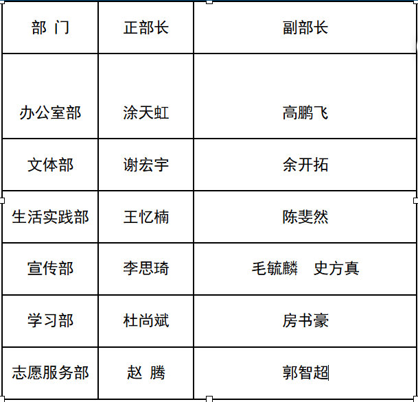 公示新葡萄8883官网AMG官网学生会部长竞选结果:
