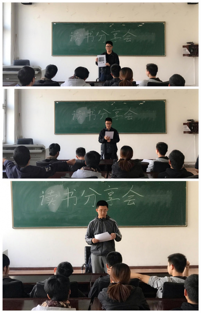本次活动由班长李东洋主持,首先是涂天虹同学分享了《岛上书店》,这本书以温情暖人的故事描写了很多关于书的内容,讨论书架和书店,关于书的一切,有这样一句话令他十分感动:“我们不是我们所收集的 、得到的 、所读的东西 ,只要我们还活着 ,我们就是爱 ,我们所爱的事物 ,我们所爱的人 。所有这些 ,我认为真的会存活下去 。 ”然后杜尚斌同学分享了《摆渡人》这本书,作者从少年人的角度洞悉人性的温情,通过男女主人公的所见所感,道出所有人对亲情、友情和爱情终极幸福的向往。 它运用极其平淡的叙事方法,但人与人之间微妙的感情令千万读者灵魂震颤。最后由李东洋同学分享了《遇见你之前》,它讲述了懵懂的小镇女孩小露与下肢瘫痪的老板威尔间的爱情挽歌,并非仅只是止于了童话般的幻恋,其中诱发关乎生命的思考,对爱与生命独到的解读,于悲喜交加中,给人向前一步的力量。