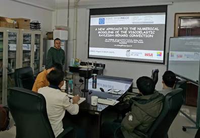 受中国-法国蔡元培合作项目资助,新葡萄8883官网AMG官网李彪博士邀请法国国立应用科学院(INSA-Lyon)Hervé Pabiou研究员和Xin Zheng博士生来我校进行为期约1个月的交流,交流过程中进展顺利,收获颇丰,双方进行了友好深入的学术合作。Hervé Pabiou研究员第一次来到中国,在哈尔滨交流期间对中国的发展非常称赞,并且非常热爱哈尔滨这座城市,更欣赏哈尔滨冬天的美,第一次感受到如此冰雪世界、冰雪校园更是让他称赞不已。Hervé Pabiou研究员的主要工作集中于自然对流在建筑围护结构中保温应用的实验研究。Hervé Pabiou研究员和Xin Zheng博士生此次来我校进行为期一个月的学术交流,并合作进行粘弹性流体Rayleigh-Benard对流的实验研究。在我校期间Hervé Pabiou研究员和Xin Zheng博士生为课题组做了关于自然对流的主题报告,报告题目为《Experimental research of natural convection and its application》和《A new approach to the numerical modeling of the viscoelastic rayleigh-bénard convection》,报告和交流时间是2019年12月18日19:00-21:00。讲座在新葡萄8883官网AMG官网动力楼417室完成,讲座内容充实精彩,与组内人员沟通热烈,并为进一步的合作打下了坚实的基础。双方表示,在讨论过程中产生的新想法将会在明年Hervé Pabiou的来访中进行实施。