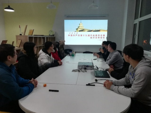 首先,由班长进行学习十九届四中全会精神的报告,并依据报告内容组织班级同学进行讨论。班级全体同学积极参与讨论、勇于提出自己的见解。通过此次学习不仅巩固了青年大学习中的十四个坚持基本方略,还加深了不忘初心牢记使命时代精神。