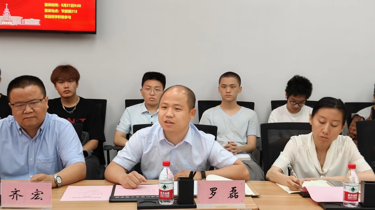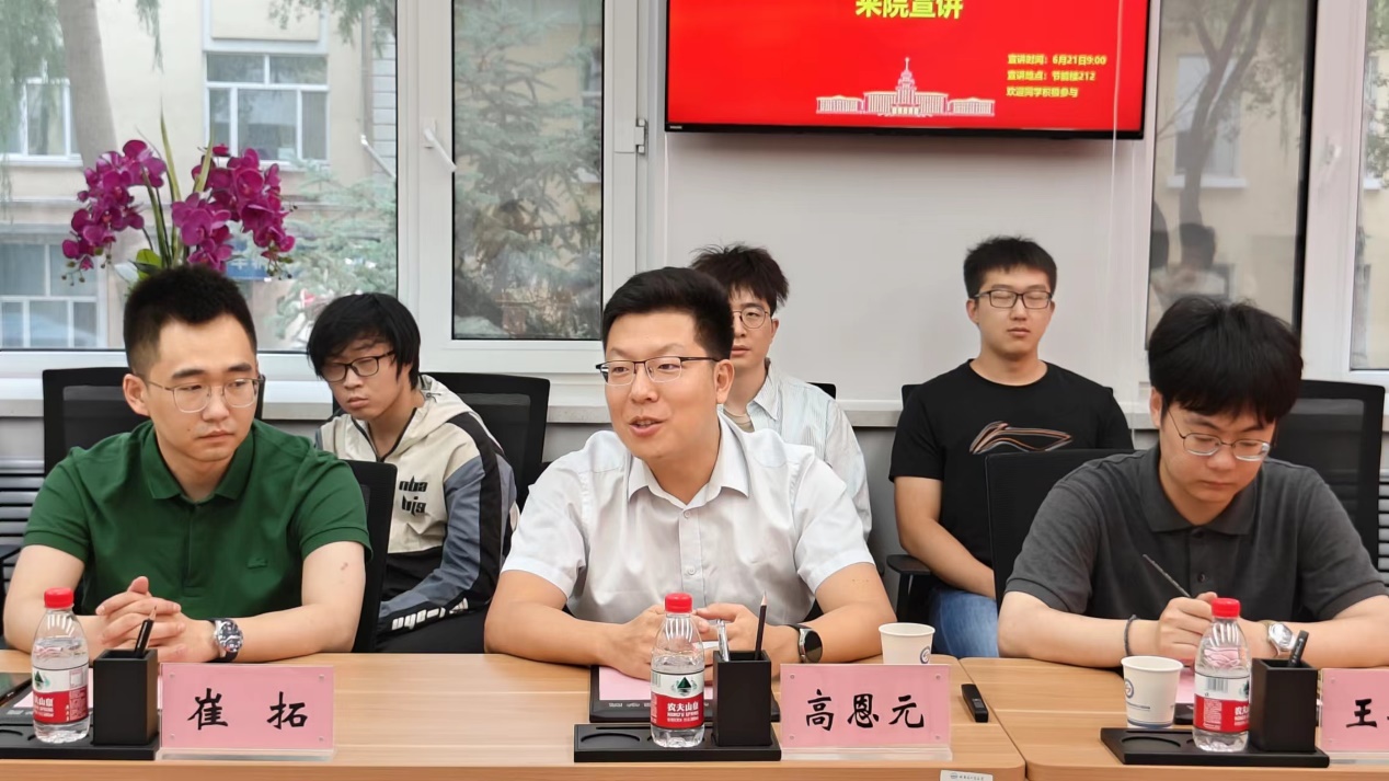 崔拓、郜哲明分别从美的集团经营业绩、业务板块与核心技术等方面介绍了美的集团整体情况。王云鹏为在场同学介绍了本次竞赛的参赛形式与要求,并与同学们进行了互动交流。