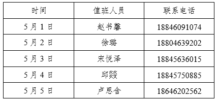 新葡萄8883官网AMG官网学工办劳动节假期值班表